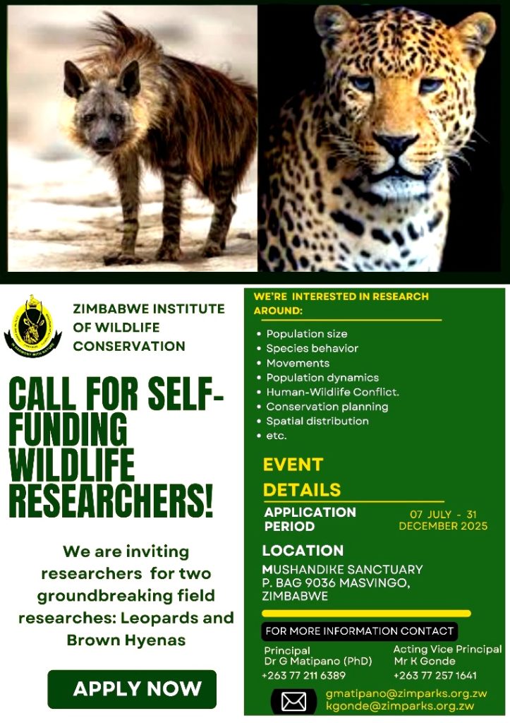 Call for Self-Funding Wildlife Researchers at Zimbabwe Institute of Wildlife Conservation